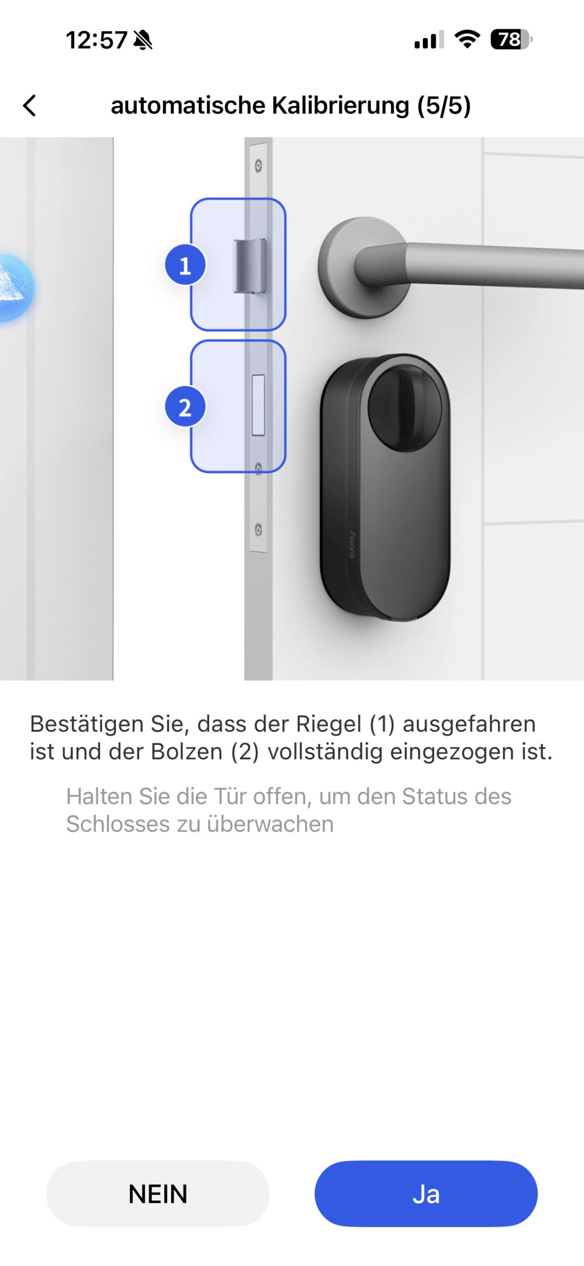 Die Einrichtung erfolgt im Anschluss über die Aqara-App. Das Schloss wird mittels Bluetooth-Verbindung erkannt und schrittweise hinzugefügt. Während des Konfigurationsprozesses wird der Schließmechanismus erneut überprüft und gegebenenfalls angepasst. Anschließend können Fingerabdrücke, PIN-Codes und NFC-Karten registriert werden. Eine optionale Integration über Matter in bestehende Smart-Home-Systeme ist ebenfalls möglich. Die gesamte Installation inklusive Einrichtung nimmt in der Praxis üblicherweise zwischen 15 und 30 Minuten in Anspruch und ist auch für technisch versierte Anwender problemlos realisierbar.