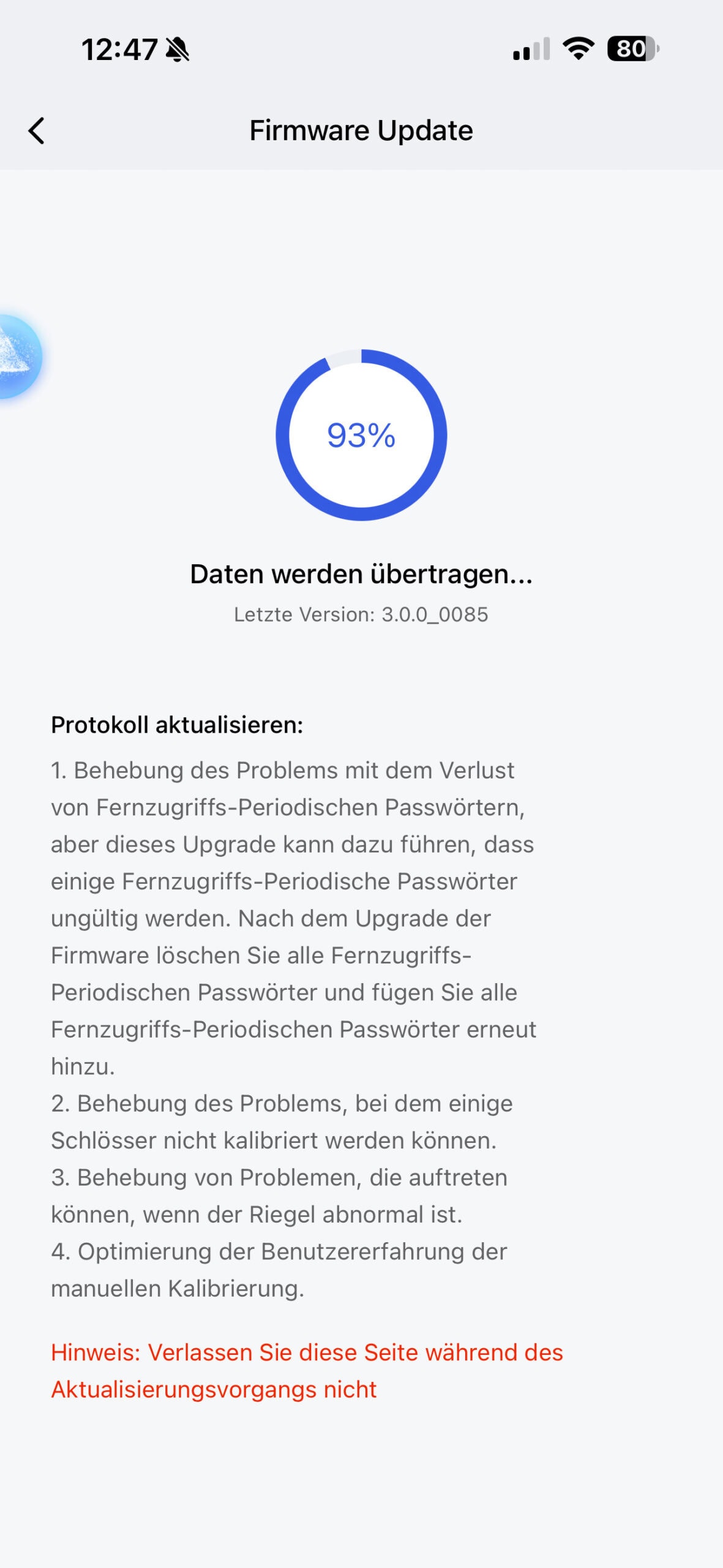 Die App ermöglicht die Verwaltung mehrerer Aqara Smart Locks und Keypads innerhalb eines Accounts. Sie bietet eine benutzerfreundliche Oberfläche zur Verwaltung der Nutzerberechtigungen, zur Konfiguration von Automatisierungen und zur Überwachung des Schlossstatus. Darüber hinaus informiert die App den Nutzer über Firmware-Updates und bietet die Möglichkeit, diese bequem über die App zu installieren.