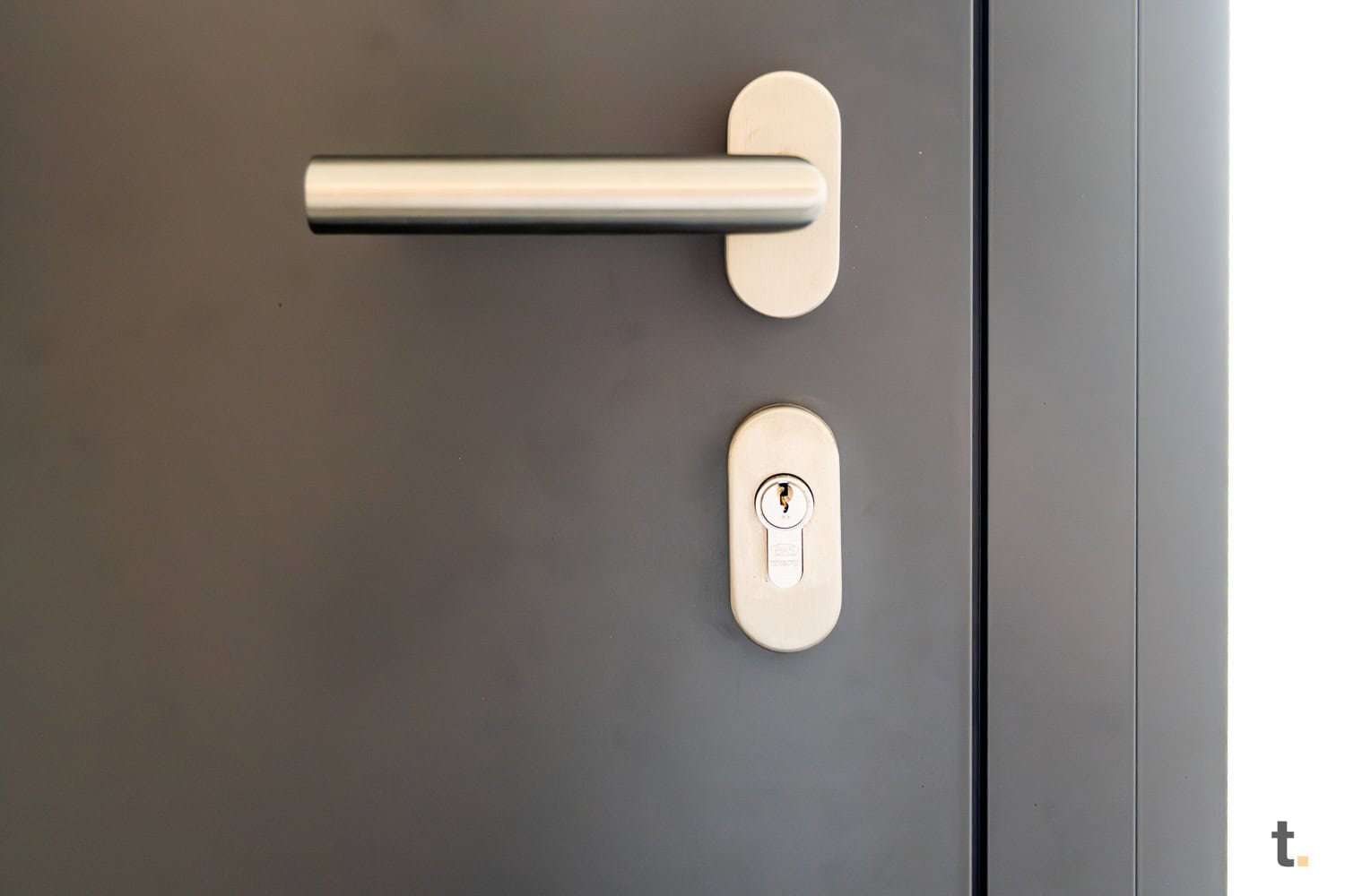 Des Weiteren erkennt das System wiederholte Fehlversuche bei der Eingabe von PIN-Codes oder Fingerabdrücken und kann entsprechende Schutzmechanismen aktivieren. Der Akkustand wird kontinuierlich überwacht und zeitnah gemeldet, um einen unerwarteten Funktionsausfall zu verhindern. Unabhängig von der Smart-Funktion bleibt die Tür jederzeit klassisch bedienbar, von außen mit dem Schlüssel und von innen über den Drehknauf.