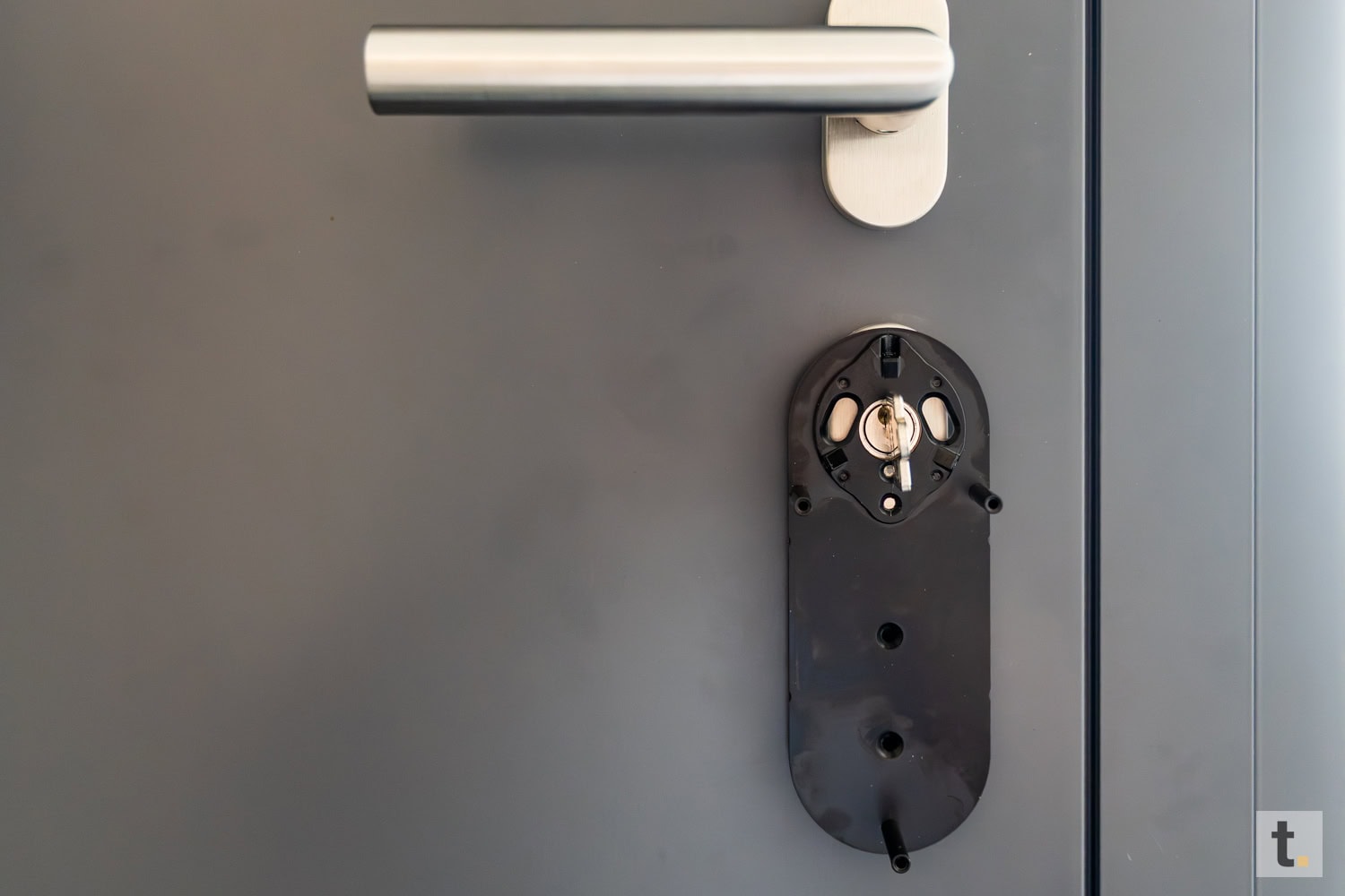 Trotz der fortschrittlichen Smart-Home-Technologie bleibt die klassische Nutzung vollständig erhalten. Die Tür kann weiterhin von außen mit einem konventionellen Schlüssel geöffnet werden, vorausgesetzt, ein Zylinder mit Not- und Gefahrenfunktion ist installiert. Innen ist eine manuelle Bedienung der Tür jederzeit über den Aluminium-Drehknauf möglich, unabhängig vom Akkustand oder der Aktivität der Funkverbindung.