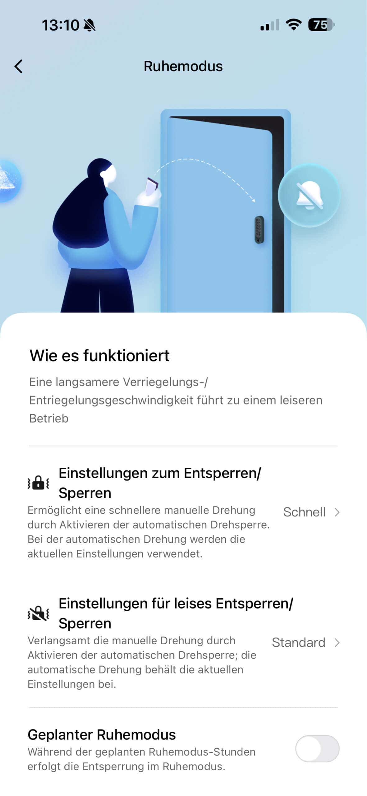 Im täglichen Betrieb arbeitet das Aqara Smart Lock U200 mit einem bürstenlosen Motor und Getriebe, welches den eingelegten Schlüssel mechanisch dreht. Dies führt beim Ver- und Entriegeln zu einem deutlich wahrnehmbaren Surren bzw. einem mechanischen Arbeitsgeräusch. Das Schloss ist somit nicht geräuschlos, insbesondere in sehr ruhigen Umgebungen ist der Motorbetrieb wahrnehmbar. Im normalen Wohnalltag mit üblichen Hintergrundgeräuschen bewegt sich die Lautstärke jedoch auf einem typischen Niveau für motorisierte Nachrüst-Smartlocks und wirkt weder störend noch übermäßig laut.