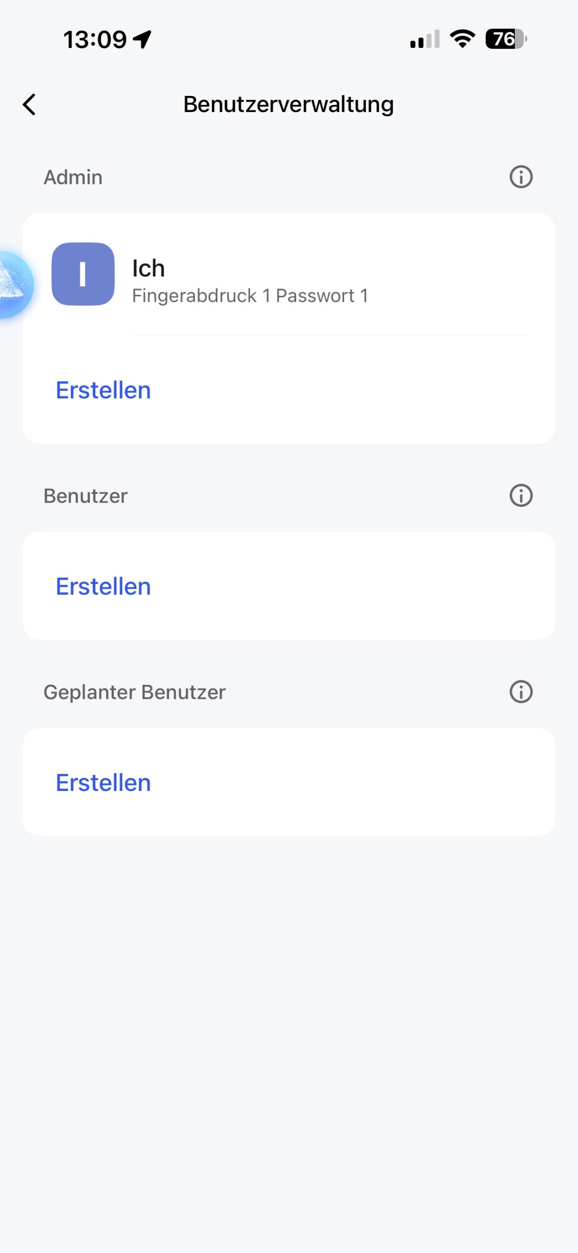 Die Benutzerverwaltung innerhalb der App zeichnet sich durch ihre hohe Flexibilität aus. Es ist möglich, zusätzliche Nutzer mit dauerhaften, zeitlich begrenzten oder einmaligen Zugriffsrechten zu integrieren. Die Authentifizierung kann mittels Fingerabdruck- oder NFC-Kartenlesegerät erfolgen. Familienmitglieder können über die Account-Freigabefunktion eingeladen werden, und die Zugriffsrechte können jederzeit angepasst oder entzogen werden.