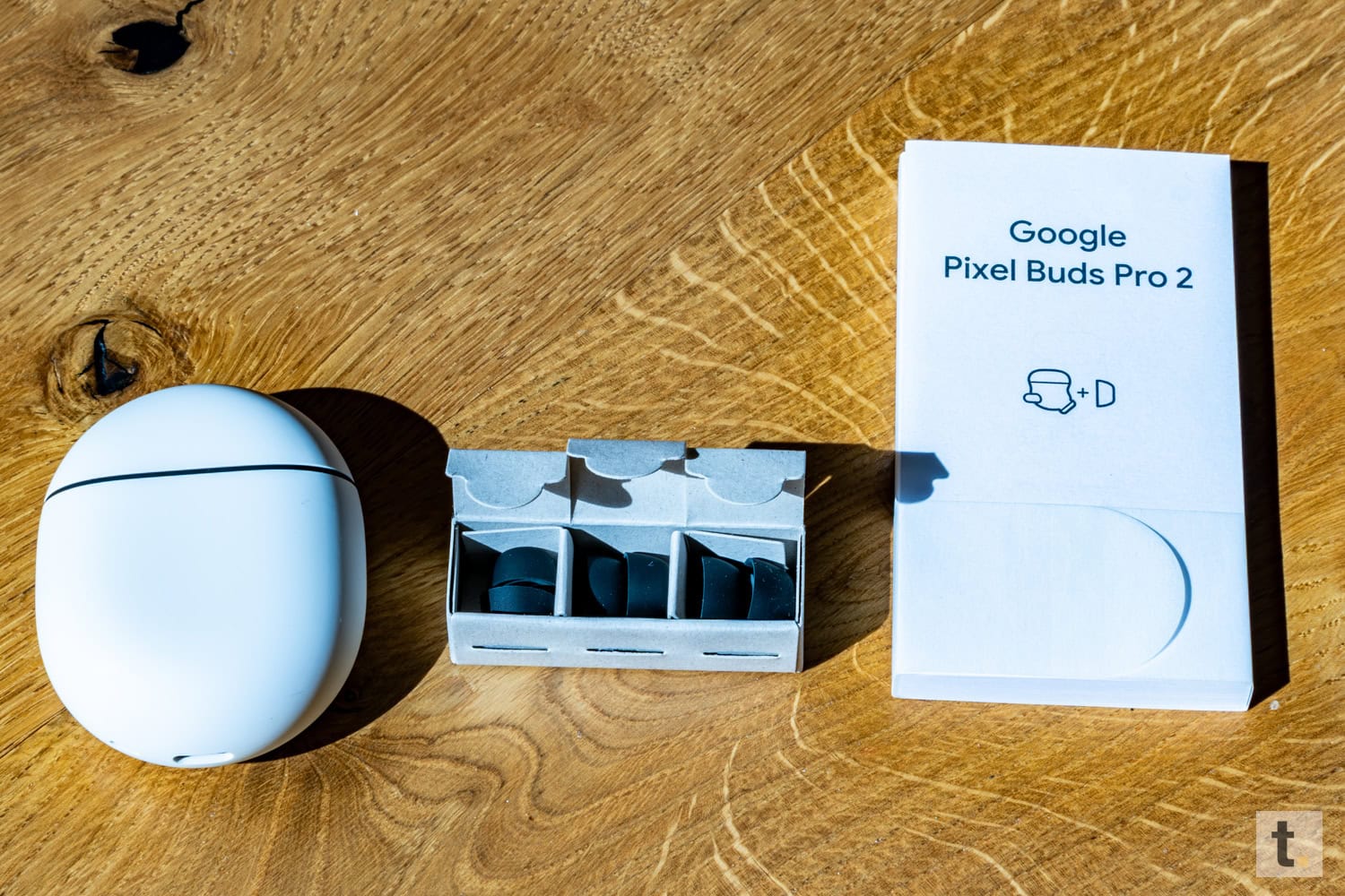 Entfernt man die Hauptverpackung aus der Umverpackung, findet man auf der Unterseite des Deckels die üblichen Skizzen, die den Lieferumfang anzeigen. Im Inneren befindet sich reichlich Schaumstoff, in dessen Zentrum das Case platziert ist. Im Case selbst befindet sich neben dem JBL Tour One auch dessen kompletter Lieferumfang. Der Kopfhörer ist zusammengeklappt und die Ohrmuschel eingedreht, um Platz zu sparen. In der Tasche am Deckel des Cases ist das gesamte Zubehör in einer Mappe verstaut. Neben einem AUX-Kabel und einem Flugzeugadapter befindet sich darin auch das wichtige USB-A auf USB-C Ladekabel zum Aufladen des Kopfhörers. Im Fach daneben befinden sich die üblichen Beipackzettel, darunter eine Kurzanleitung.