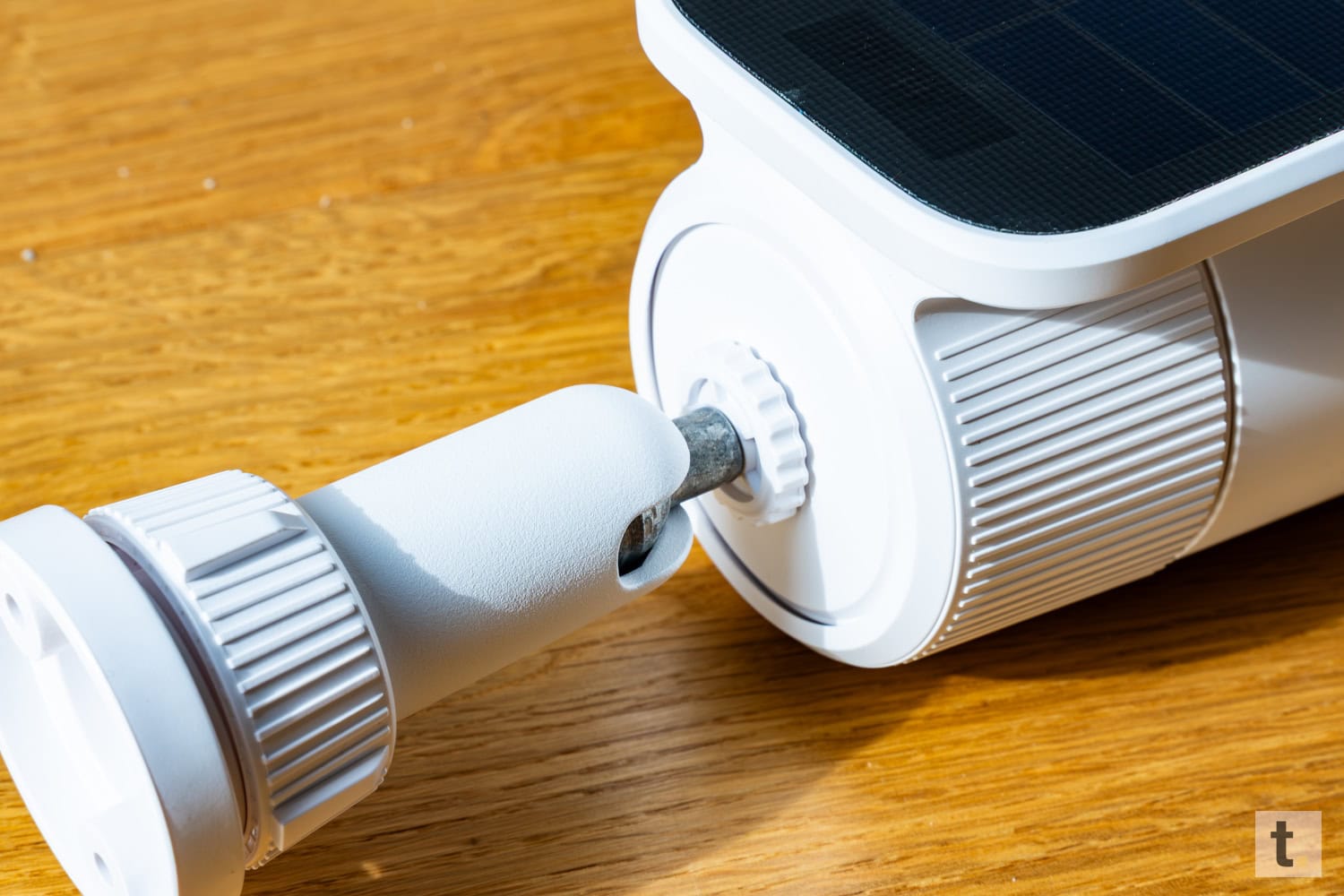 Die mitgelieferte Halterung besteht aus einem stabilen Montagearm mit Kugelgelenk, welches eine flexible Ausrichtung ermöglicht. Nach dem Fixieren befindet sich die Kamera sicher und vibrationsfrei an Wand oder Decke. Insgesamt wirkt das Design durchdacht, technisch innovativ und zugleich dezent, insbesondere das selbstnachführende Solarpanel hebt die Kamera deutlich von vielen Konkurrenzmodellen ab.