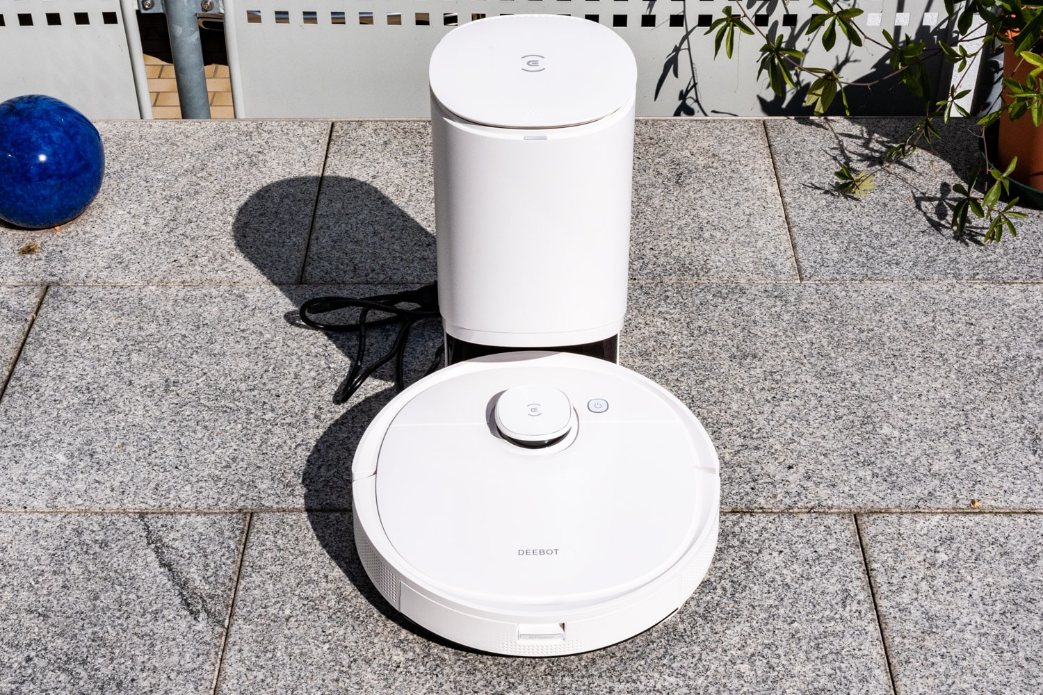 Die neue Absaugstation welche in zum ersten Mal im Einsatz habe, ist natürlich deutlich größer als die herkömmliche und einfach gehaltene Ladestation, wie diese z. B. beim normalen Ecovacs Deebot T9 enthalten ist. Anfangs, als ich gelesen habe, dass nun die ersten Hersteller eine zusätzliche Absaugstation mit anbieten, dachte ich, was ist das denn nun für ein unnötiges Teil, doch inzwischen habe ich die Station einige Zeit im Gebrauch und muss ganz klar sagen, ich wurde nun etwas anderem belehrt und finde die Station klasse.