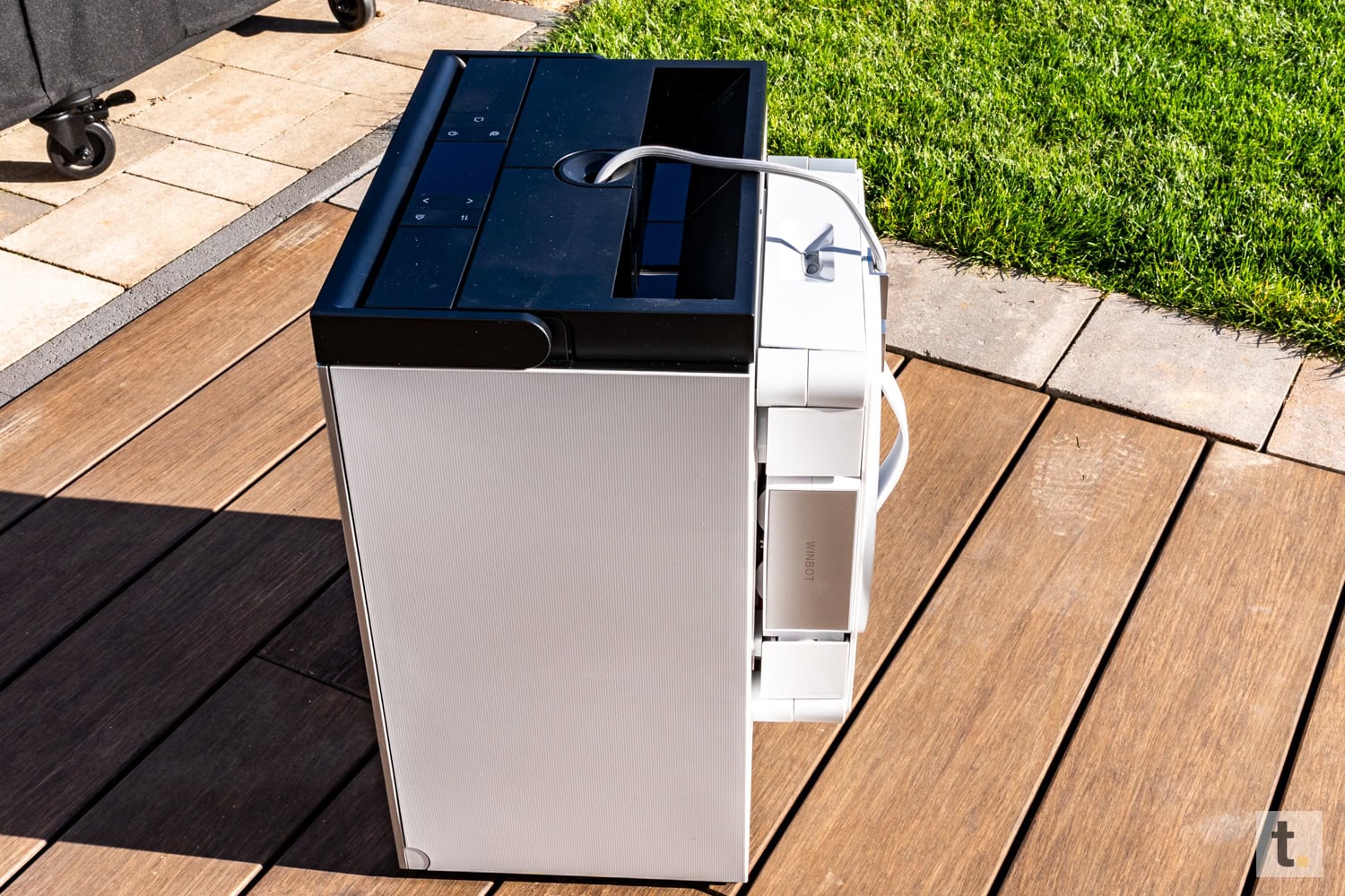 Die Station zeichnet sich durch eine übersichtliche Gestaltung ihrer Bedienelemente aus. Die wesentlichen Steuerungsfunktionen sind unmittelbar zugänglich, überwiegend in Form von klar beschrifteten Tasten oder dezenten Anzeigen. Dies ermöglicht die Bedienung bzw. Steuerung des Winbots auch ohne die Verwendung einer App. Gleichzeitig wirken die Bedienelemente nicht überladen, sondern integrieren sich harmonisch in das Gesamtbild der Station.