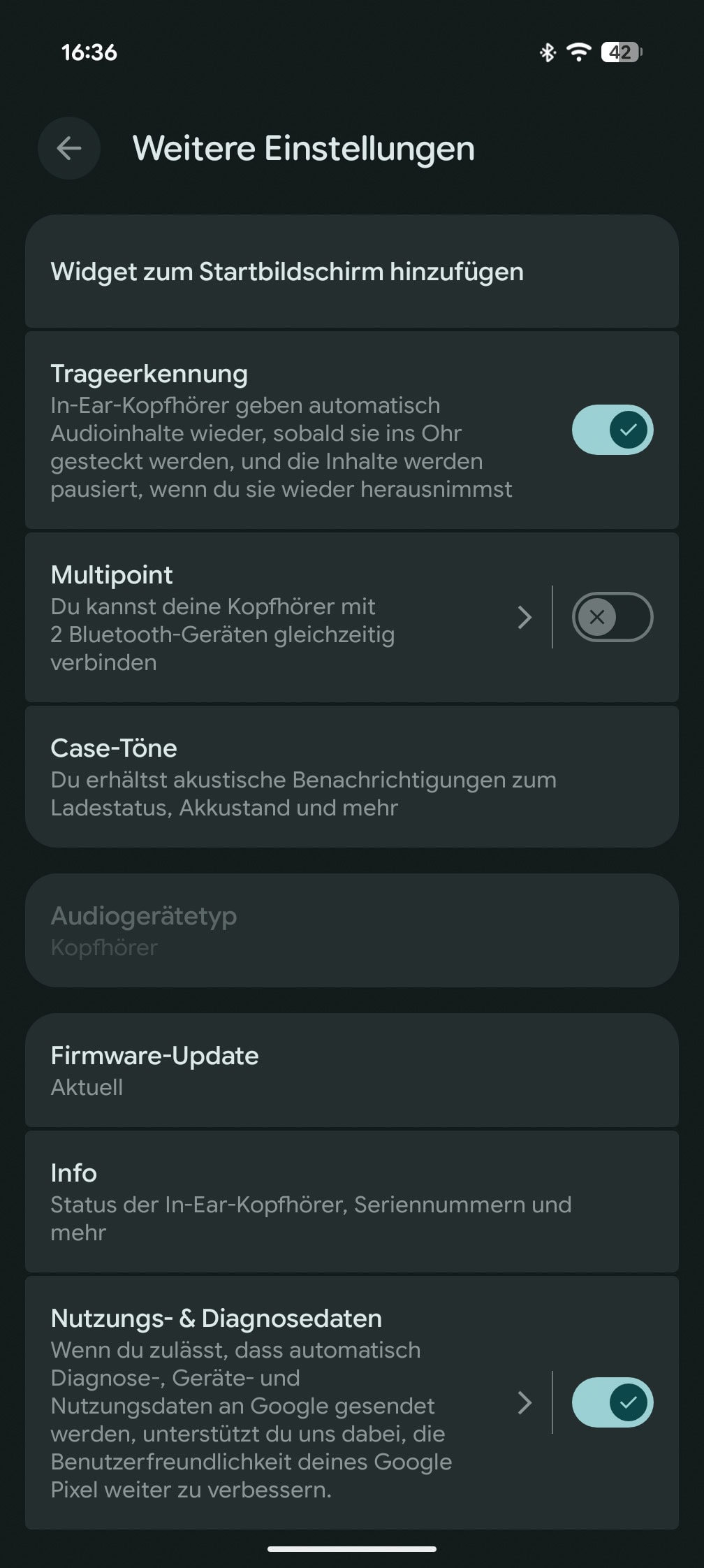 Google setzt bei seinen Bluetooth-Kopfhörern auf den aktuellen Bluetooth 5.4 Standard, inklusive Fast Pair. Diese Funktion ermöglicht ein schnelles Verbinden mit kompatiblen Android-Geräten und ist vergleichbar mit Apples Technologie, die das Koppeln der In-Ears durch einfaches Öffnen des Case ermöglicht. Alternativ kann die Kopplung auch über die Einstellungen erfolgen, beides ist unkompliziert und schnell erledigt. Die Kopfhörer können sowohl im Stereo- als auch im Mono-Modus verwendet werden, wobei es keine Einschränkungen hinsichtlich der Verwendung des rechten oder linken In-Ears gibt.