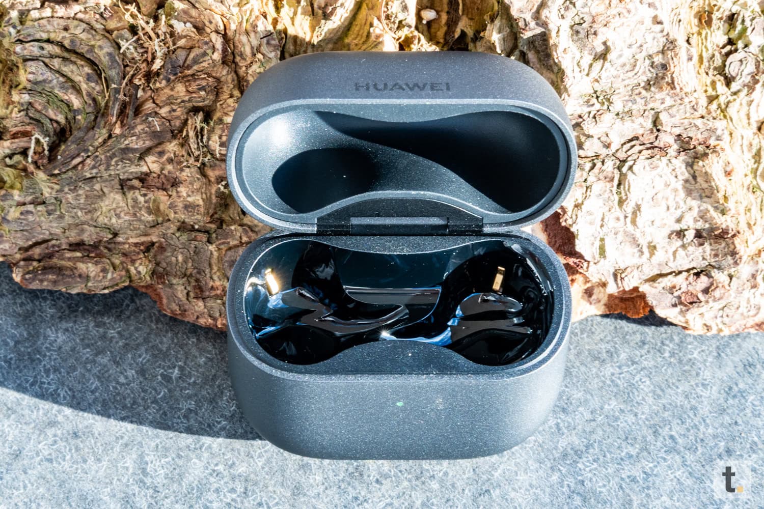 Das Ladecase der Huawei FreeClip 2 zeichnet sich durch ein kompaktes und schlichtes Design aus. Es ist aus robustem Kunststoff gefertigt und verfügt über eine matte Oberfläche, die sich angenehm anfühlt und eine geringe Anfälligkeit für Fingerabdrücke aufweist. Die leicht abgerundete Form gewährleistet einen ergonomischen Griff und ermöglicht einen problemlosen Transport in der Hosentasche oder im Rucksack.