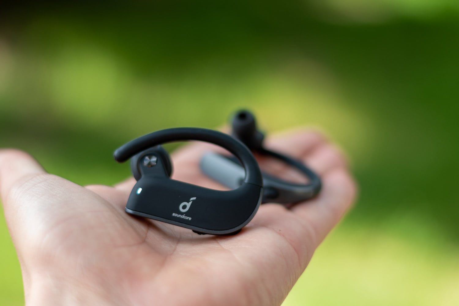 Das Design der Soundcore Spirit X2 ist wahrlich nicht als unauffällig zu bezeichnen aber durchaus dem vorrangigen Verwendungszweck entsprechend gestaltet. Dieser dient nämlich dem Sport. Die einzelnen Ohrhörer besitzen einen Ohrbügel der um das Ohr herum gelegt wird und so einerseitz für sicheren Halt sorgt aber auch Druckentlastend wirken kann. Die sogenannten EarWings sind Silikonaufsätze die es in verschiedenen Größen gibt und die IM Ohr für sicheren Halt Sorgen sollen.