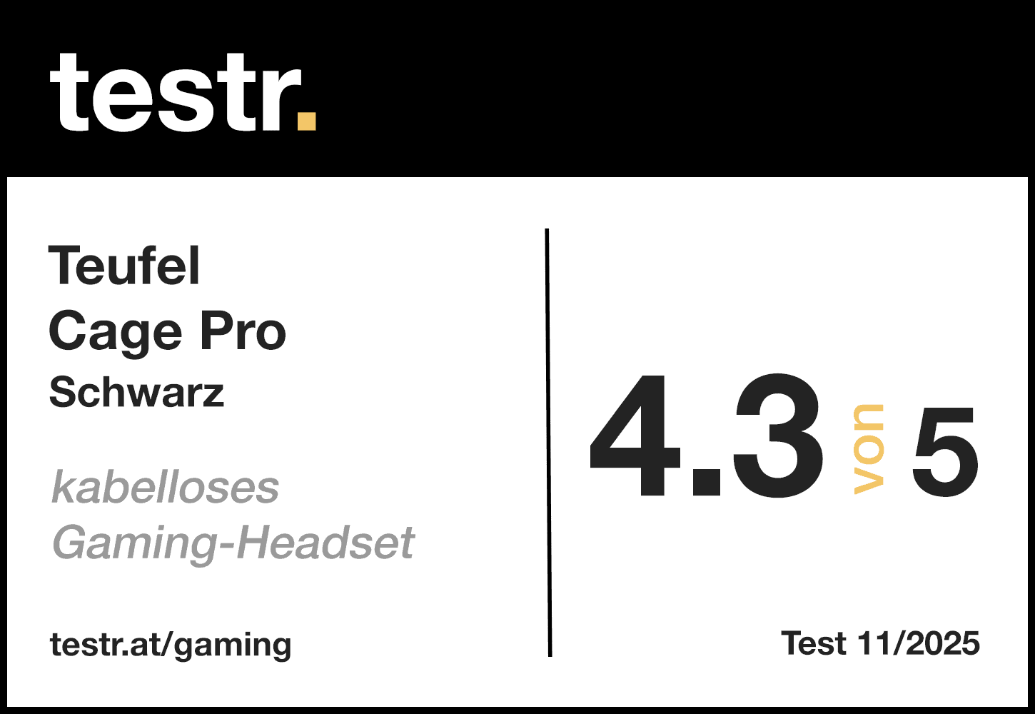 Das Berliner Unternehmen hat mit dem Teufel Cage Pro ein hervorragendes kabelloses Headset entwickelt. Das Klangbild ist sehr ausgewogen und eignet sich daher nicht nur zum Spielen, sondern auch zum Musikhören. Besonders beim Spielen profitiert man von dem tollen dämlichen Klang und den guten Mitten, die dafür sorgen, dass man die Schritte der Gegner deutlich heraushört.