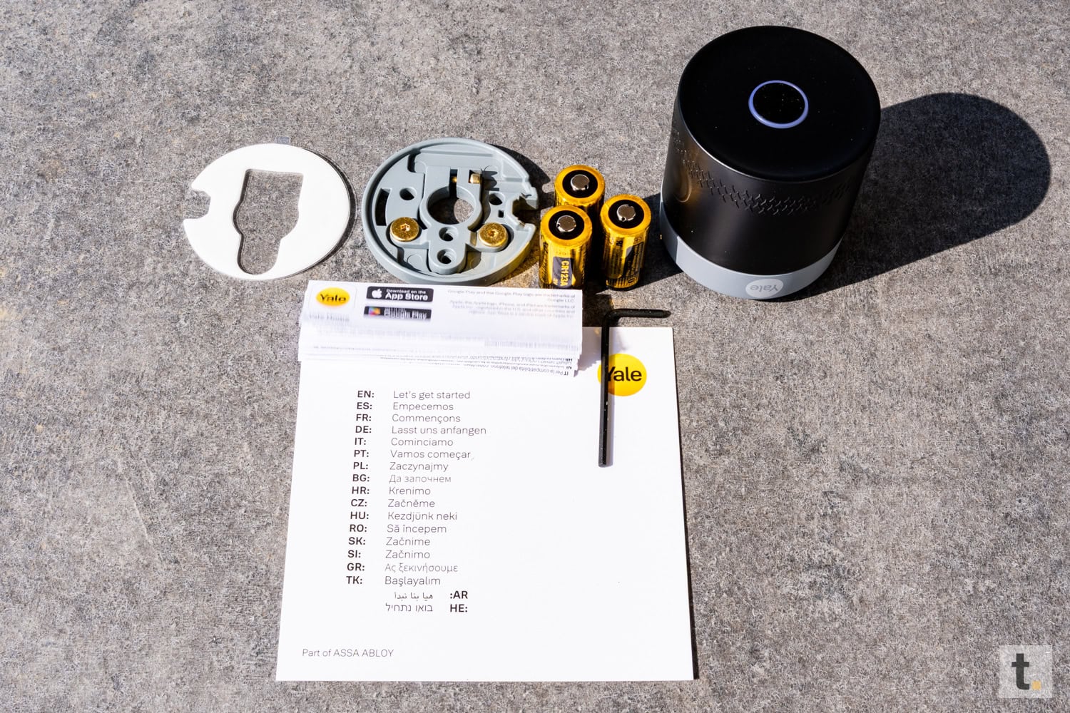Zum Lieferumfang gehören neben dem eigentlichen Smart Lock die erforderlichen Adapterplatten für diverse Türschlösser, Montagematerial sowie die benötigten Batterien. Des Weiteren liegt eine kurze Bedienungsanleitung bei, die die wesentlichen Schritte zur Installation erläutert. Insgesamt wirkt die Verpackung durchdacht und benutzerfreundlich, da alle Teile übersichtlich angeordnet und unmittelbar griffbereit sind.