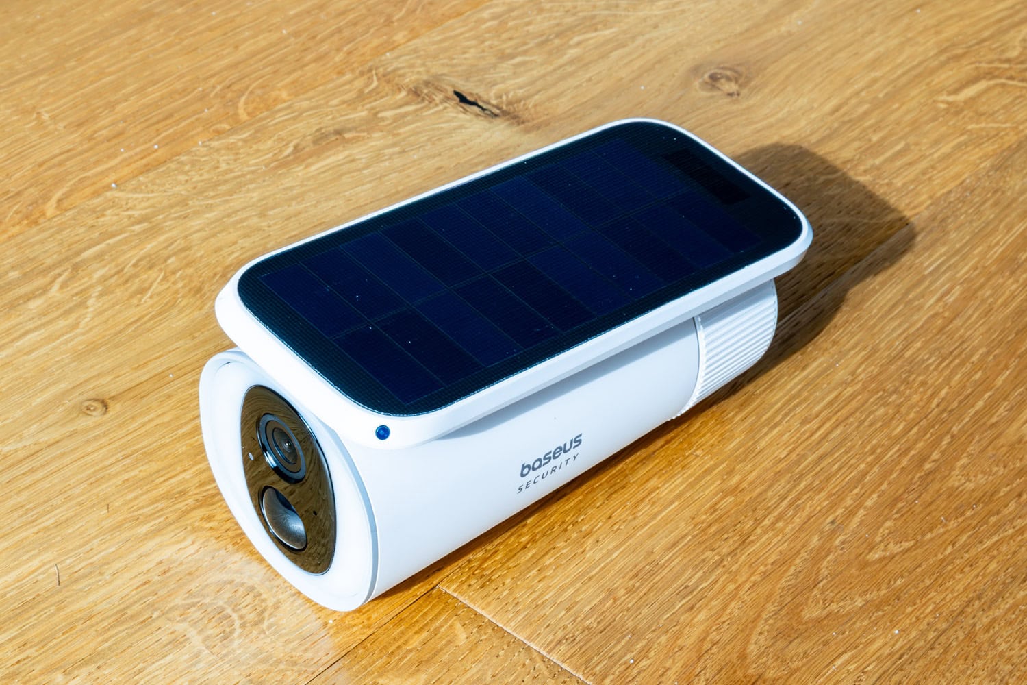 Außenüberwachungskamera mit innovativem Solarpaneel, das sich an den Sonnenverlauf anpasst.